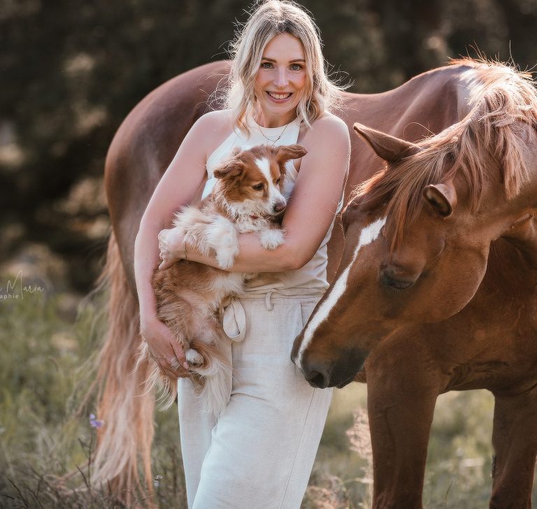 Ursprünglich um mein eigenes Pferd mit verschiedenen Diagnosen besser verstehen und unterstützen zu können, habe ich mich viel mit Anatomie und dem Bewegungsapparat des Pferdes beschäftigt, was mir sehr viel Spaß bereitete. Begeistert hatten mich auch die Fortschritte, die ich nach Klinikaufenthalten meines Pferdes mit Physiotherapeuten erreichen konnte. Obwohl ich beruflich einen anderen Weg eingeschlagen habe, ließ mich der Gedanke nicht los, Monti noch umfassender und auch eigenständig unterstützen zu können. Gleichzeitig wuchs der Wunsch, mein Wissen auch anderen Tieren zugutekommen zu lassen – und mein langjähriges Hobby zum Beruf zu machen. So entschied ich mich, meinem Herzen zu folgen, und absolvierte die Ausbildung zur Pferdephysio- und Rehatherapeutin und gründete nebenberuflich meine mobile Fahrpraxis. Es kostete mich einiges an Fleiß, Ehrgeiz und Mut & dennoch bin ich nach wie vor begeistert, weshalb ich mich dann auch noch zur Hundephysiotherapeutin weitergebildet habe, um künftig noch mehr Tieren auf ihrem Weg zu mehr Bewegungsfreude und Lebensqualität zu helfen.